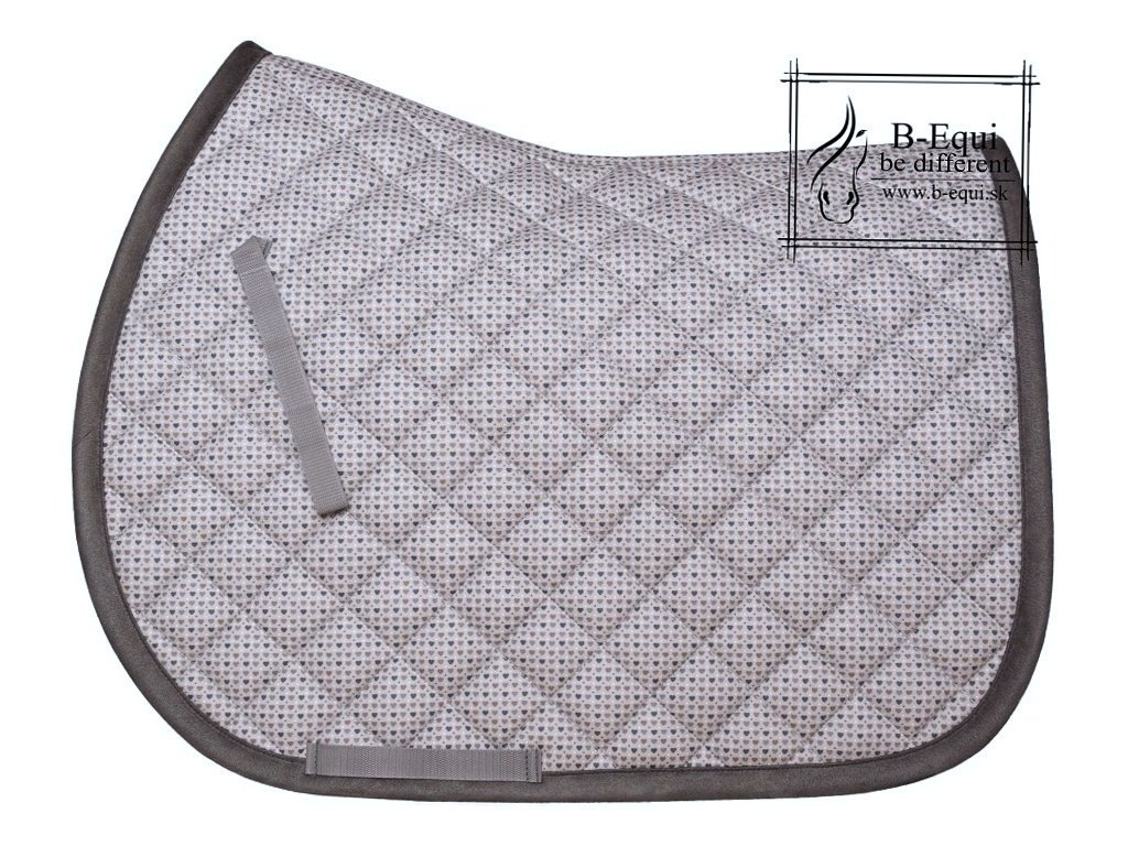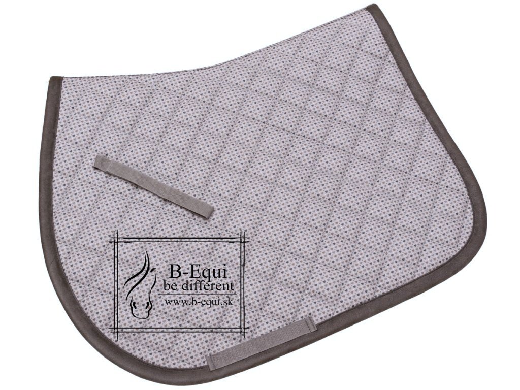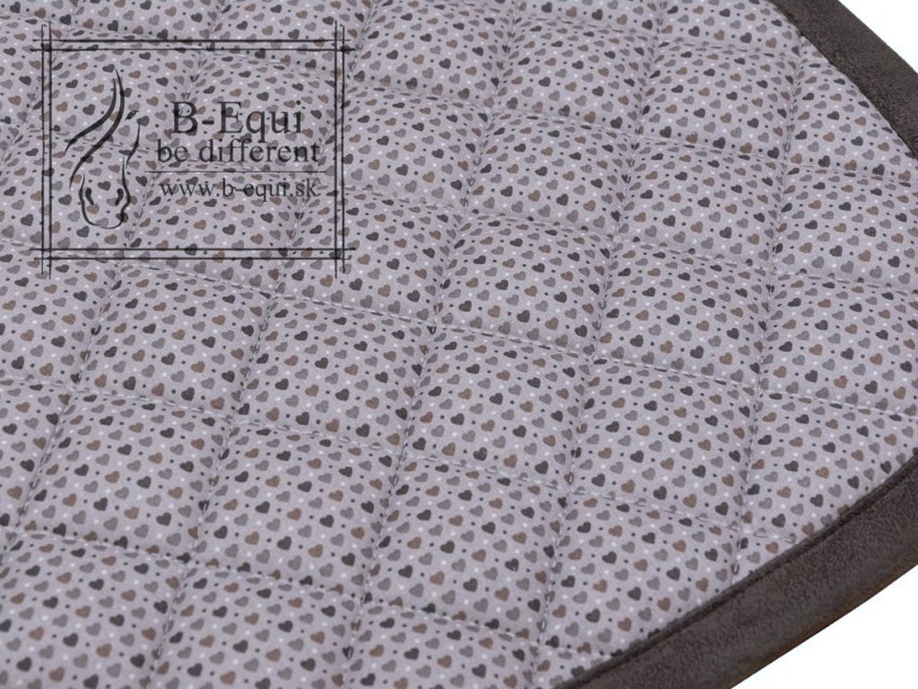 Podsedlovka vhodná pod všestranné a skokové sedlo. Vrchná strana je zo 100% bavlny so vzorom srdiečok. Spodnú stranu tvorí látka zo 100% bavlny vaflového vzoru, svetlej farby. Lem podsedlovky je tm. šedý bez zdobenia. Jadro tvorí zmes vatelinu a špeciálnej výstuže. Podsedlovka je vďaka tomu príjemne mäkká, pod sedlom sa neposúva a zároveň dobre drží tvar.